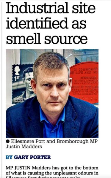 Justin Madders MP continuing to ask questions about the ongoing Ellesmere Port stink.